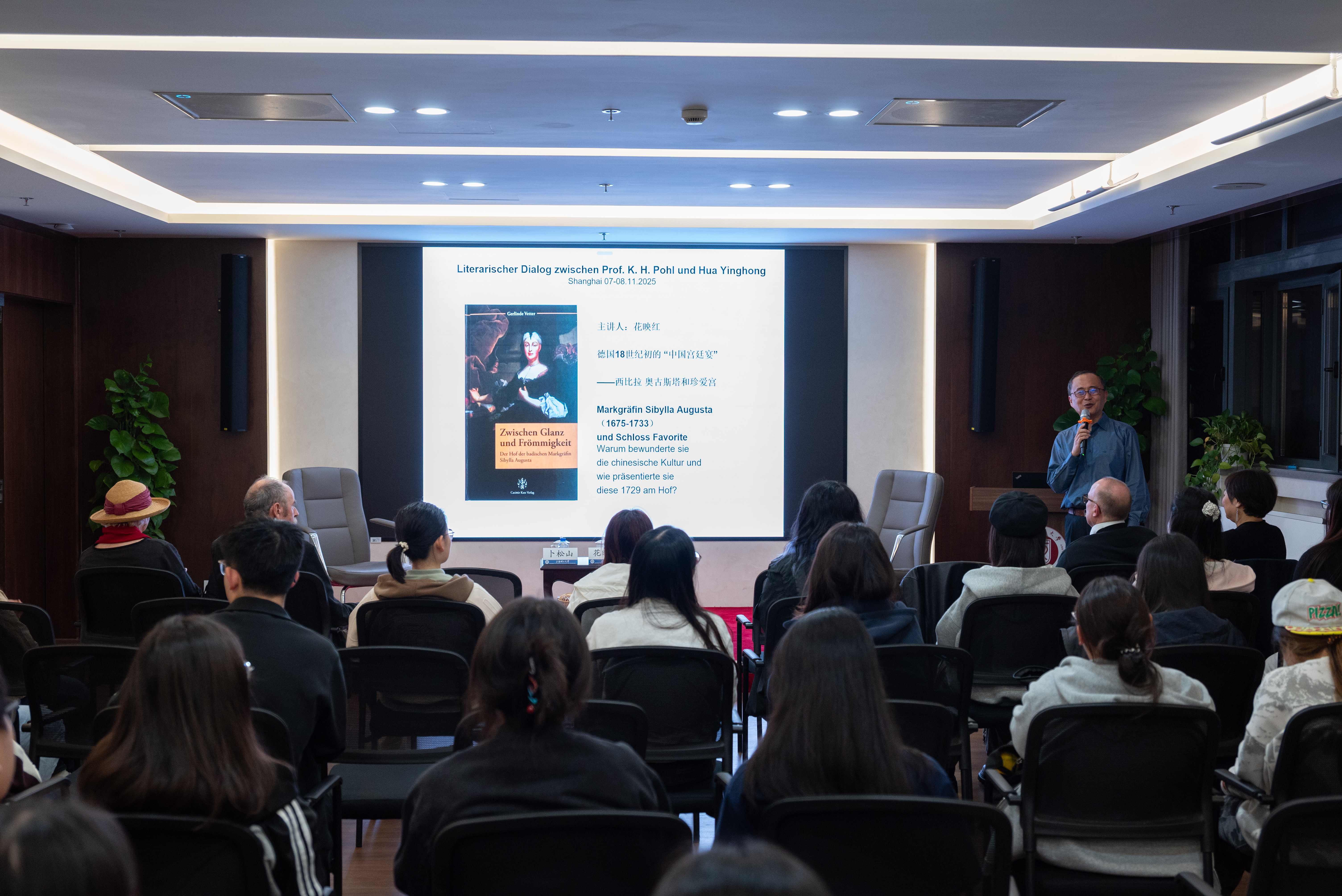 11月7日,一场以“文学对话——中德跨文化交流”为主题的联合讲座在上海理工大学德国文化交流中心成功举办。本次活动由上海理工大学国际交流处德国文化交流中心主办,得到了复旦大学德国校友会的大力支持,吸引了众多师生及中外文化爱好者参加。活动邀请到德国著名汉学家、特里尔大学孔子学院德方院长卜松山教授(Prof. Dr. Karl-Heinz Pohl)与著名导演、文化建筑出品人花映红女士,两位嘉宾以不同视角展开思想碰撞,共同探讨文学与文明交流的深层关系。