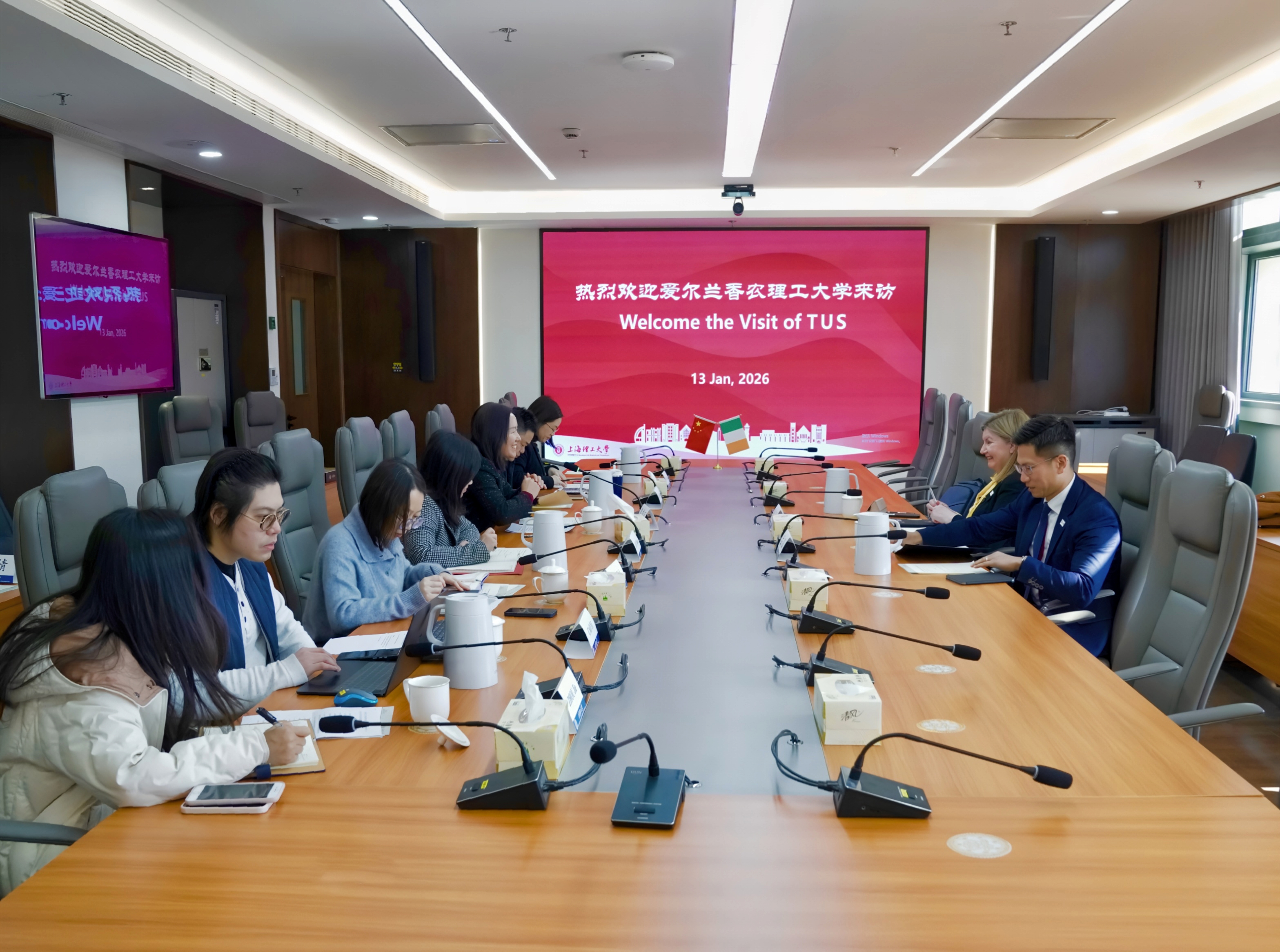 1月13日上午,爱尔兰香农理工大学全球合作与伙伴关系主任玛丽·辛普森(Mary Simpson)一行来访上海理工大学。出版学院、管理学院相关负责人及教师代表出席会谈,会议由学校国际交流处副处长耿秀丽主持。