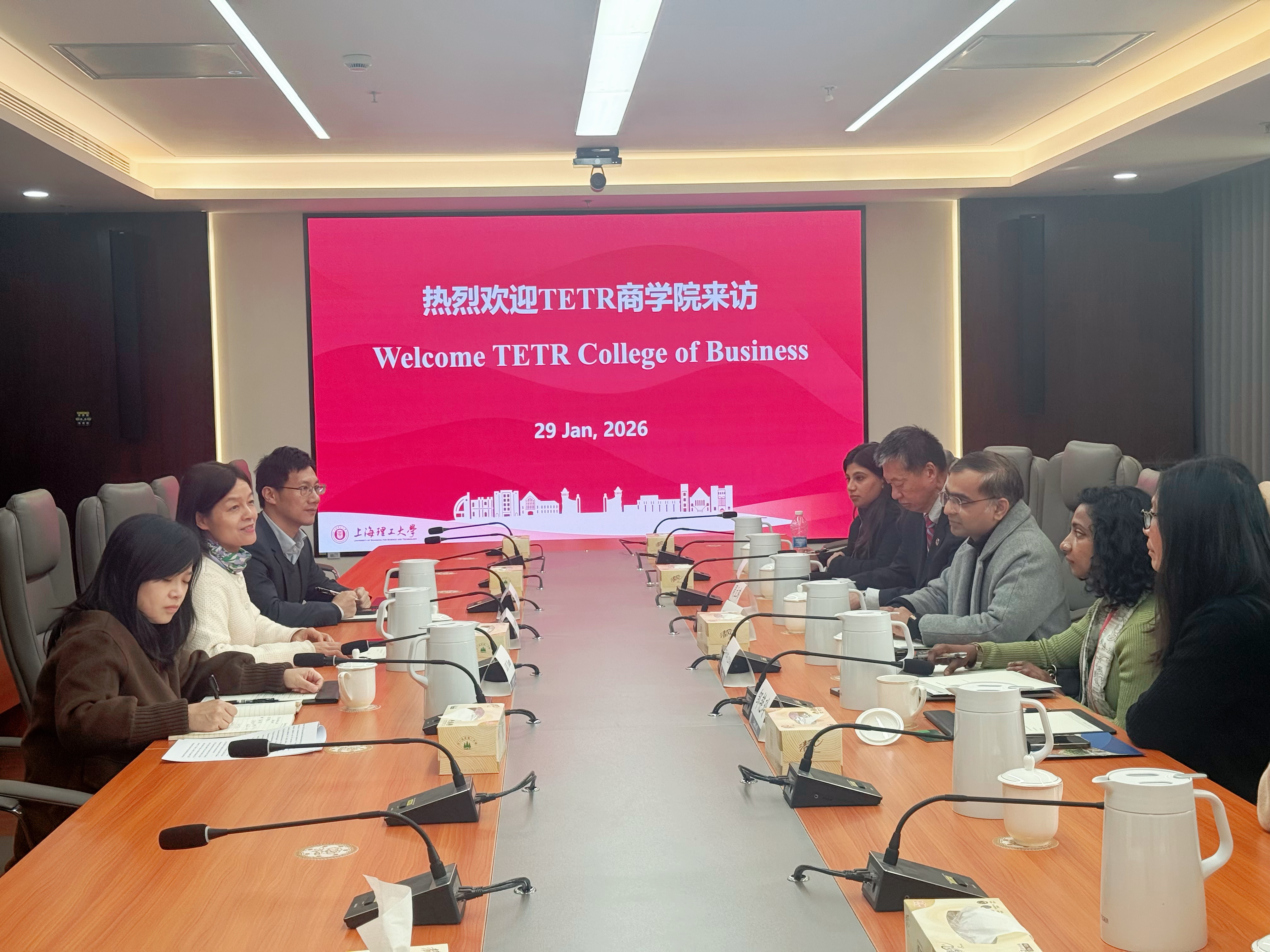 1月29日上午,TETR商学院联合创始人塔伦・甘瓦尔(Tarun Gangwar)、湾区委员会全球项目副总裁兼中国区运营负责人邹艳玲(Jennifer Zou)、国际绿氢创新中心创始人周立玮(Allan Chow)一行7人来访上海理工大学。副校长蔡永莲会见了来宾,国际交流处相关负责人及教师陪同参与会谈。